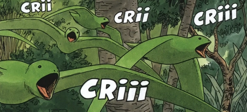The Little Green Birds are a plentiful species that lives on Betelgeuse-6, the human colonists on the planet used them to detect when predators approached. Without fail, when a predator approached the village they started to scream in a particular way.